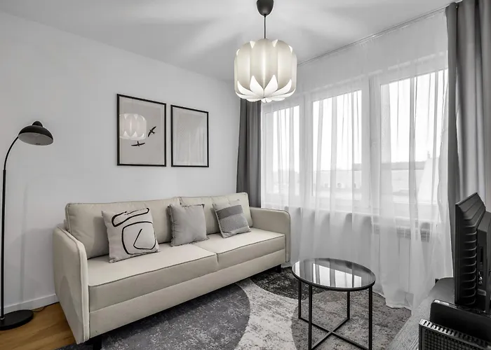 Im Bezirk Wola gelegen, befindet sich dieses Apartment nur 350 Meter zu Fuß vom Fashion House Shopping Center Klif entfernt. Das 36 m² große Apartment liegt in rund 2 km Entfernung von der Zachęta-Nationalgalerie in Warschau. Der Präsidentenpalast liegt in einer Entfernung von rund 10 Fahrminuten von dieser Unterkunft.